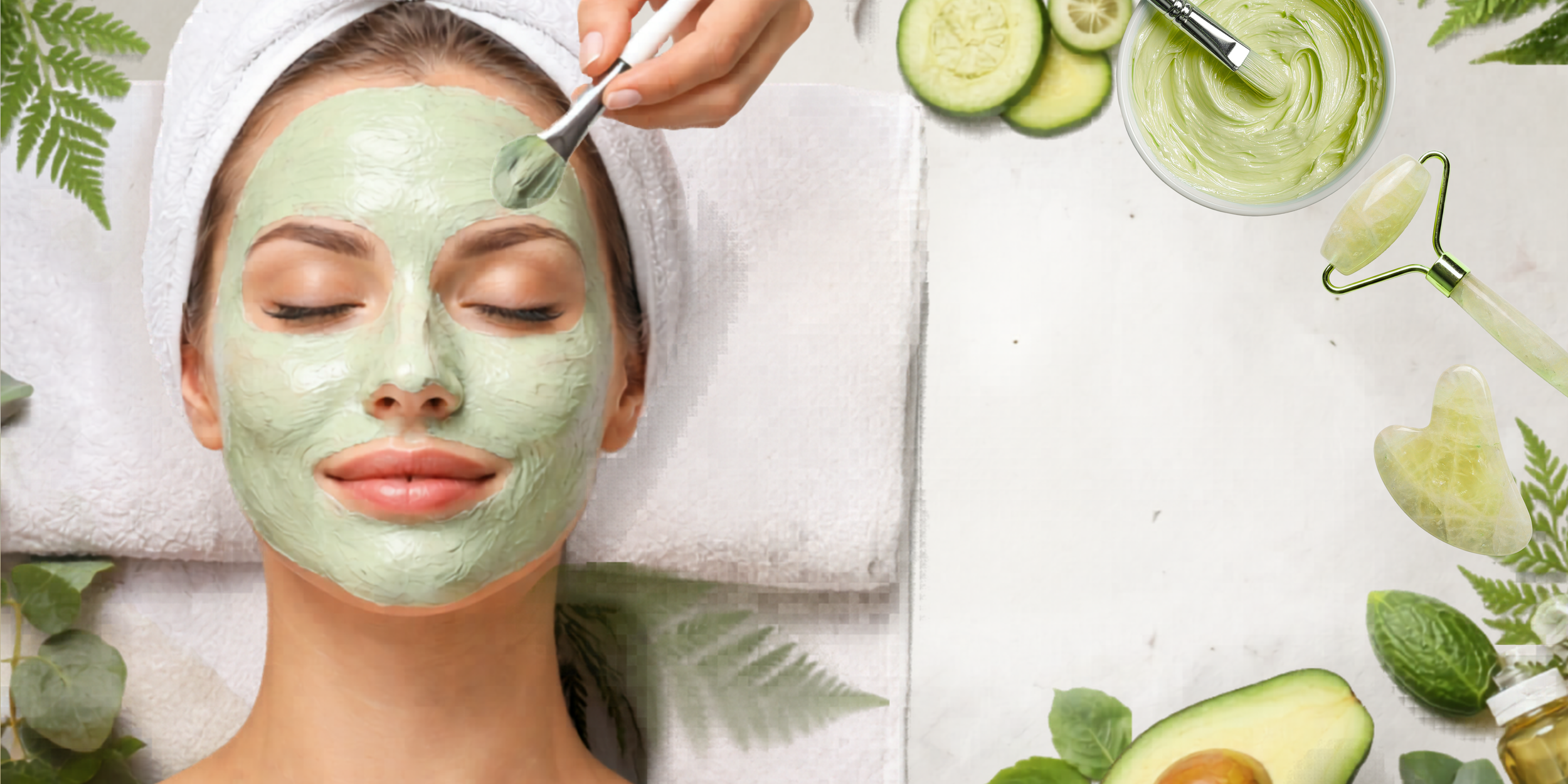 We begin with a luxurious oil cleanse to melt away makeup and daily buildup, followed by an antioxidant-rich green-tea milk cleanse to calm and refresh the skin. A gentle exfoliating peel is applied to smooth texture, brighten dullness, and reveal a more radiant complexion. Then skin is treated to a vitamin-rich, creamy mask where avocado takes center stage—delivering essential nutrients and deep hydration to replenish and restore.